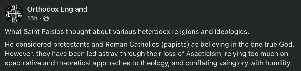 Since many of these re-shares are private, we cannot know the full extent of the mistruth that was propagated to so many people. We can only say, through experience, that these sorts of posts tend to take great hold of many Orthodox Christians, and are often reshared for months, and then get additionally reshared every couple of months, getting even more engagement. Much damage is done.